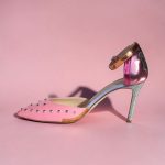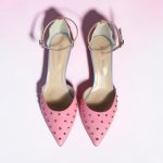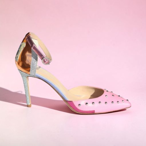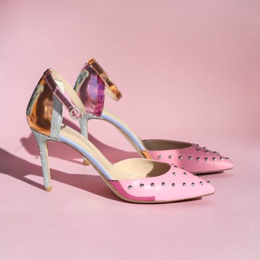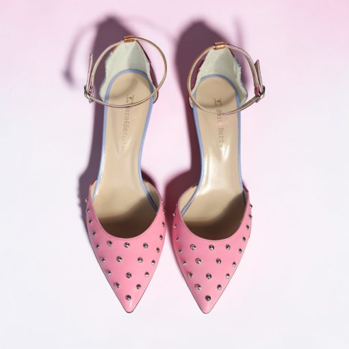 Pink leather pointed heel with silver studs