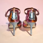 - silver and orange mirrored ankle strap with silver buckle