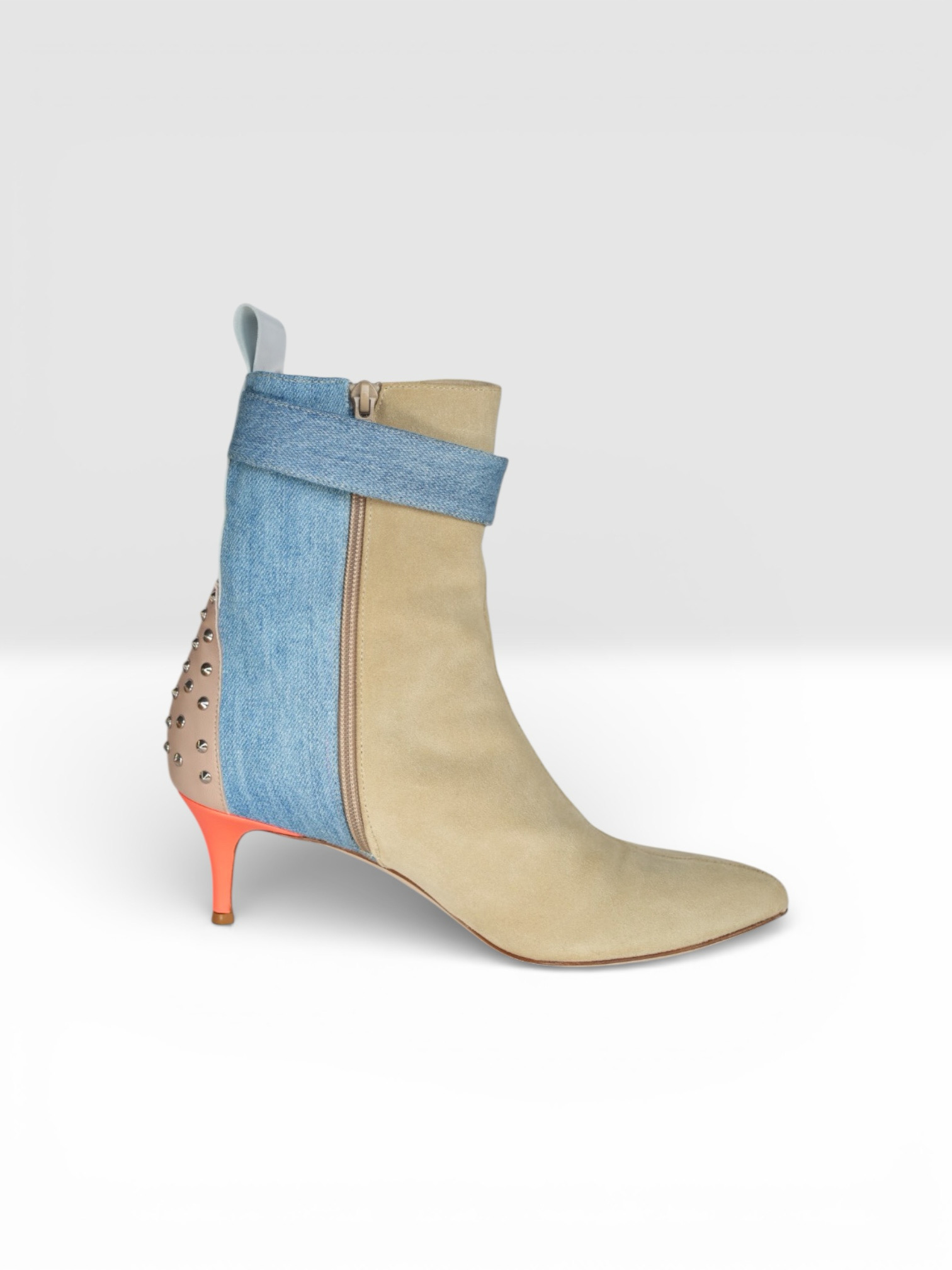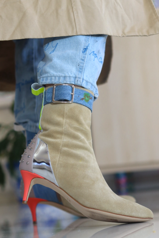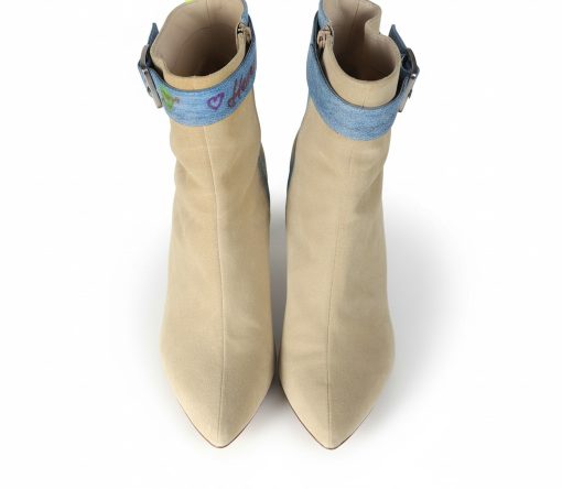 Beige suede leather ankle boots