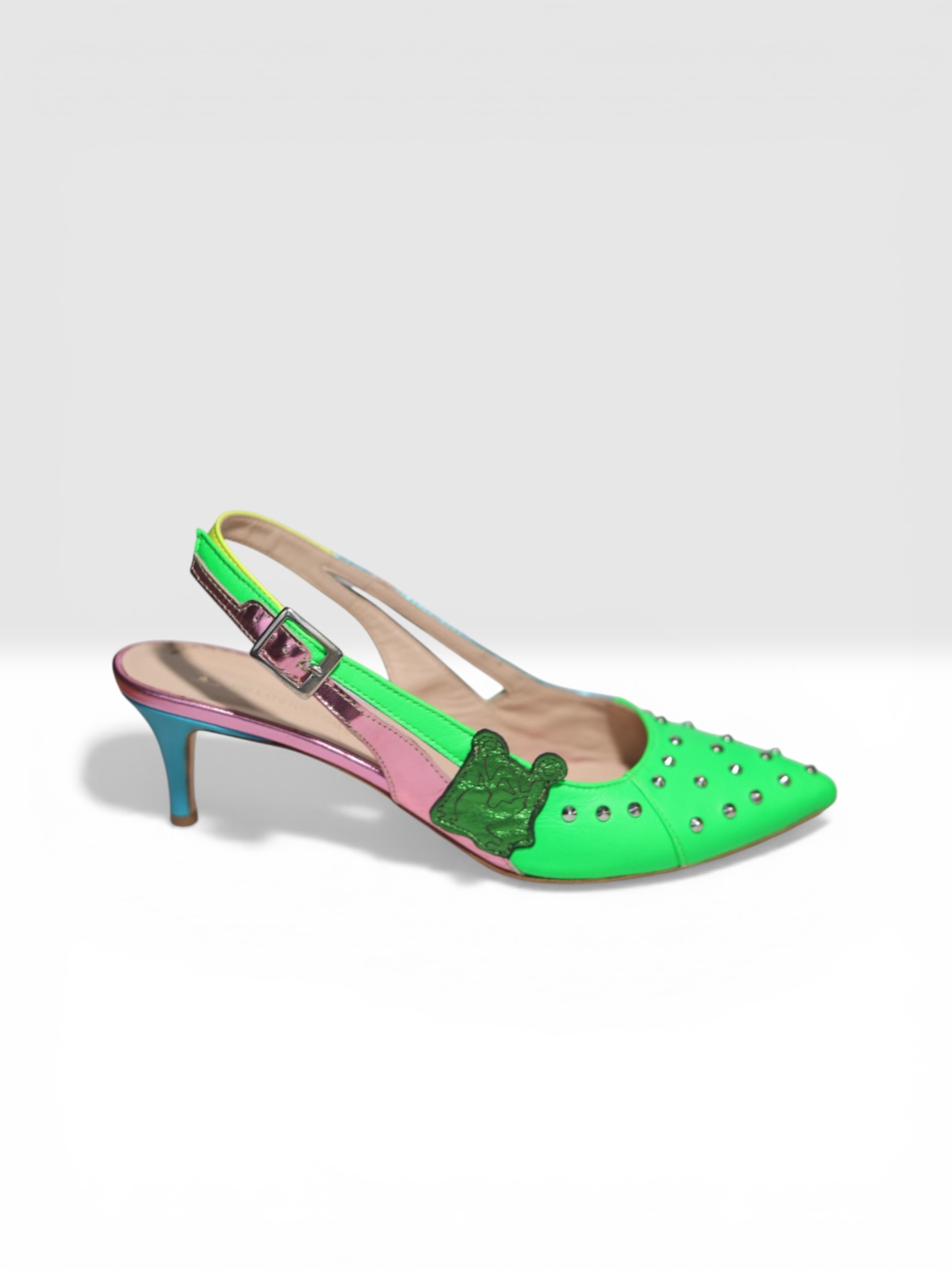 - neon green leather with silver studs
