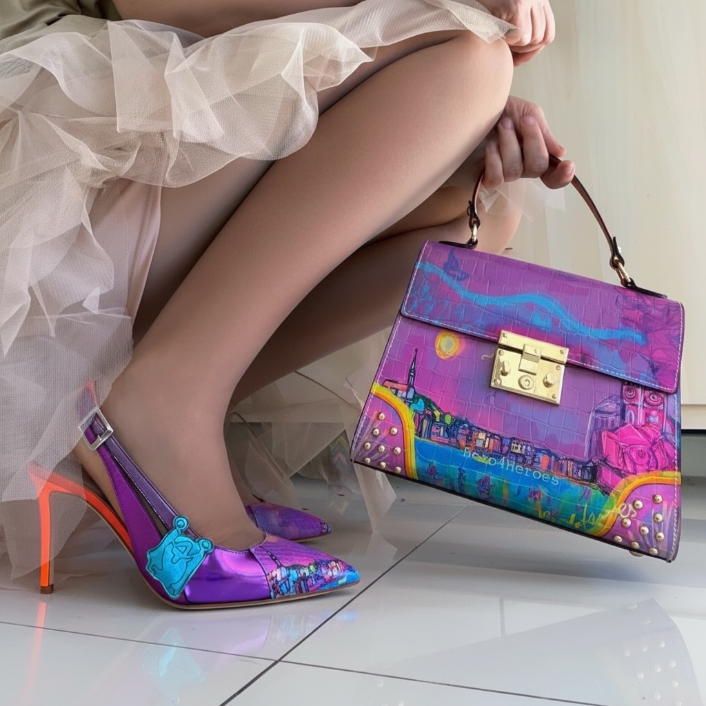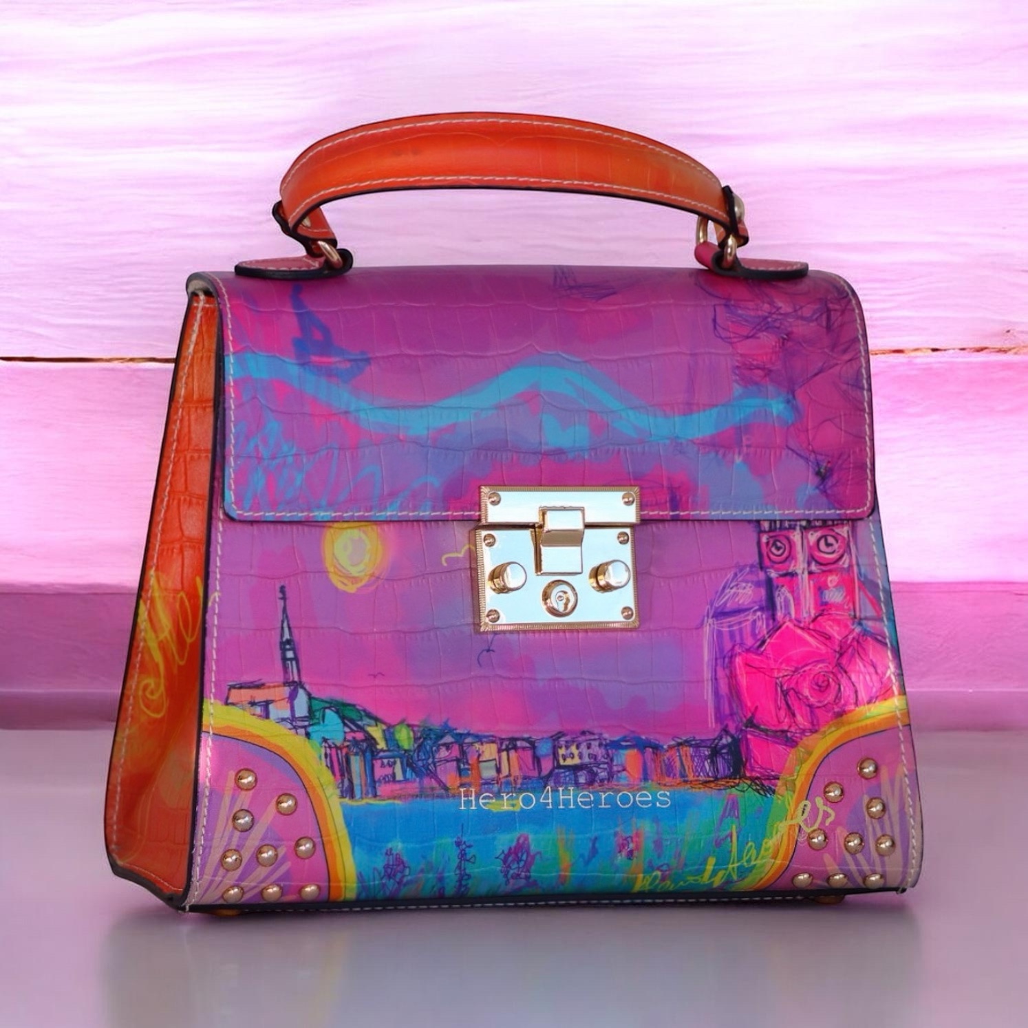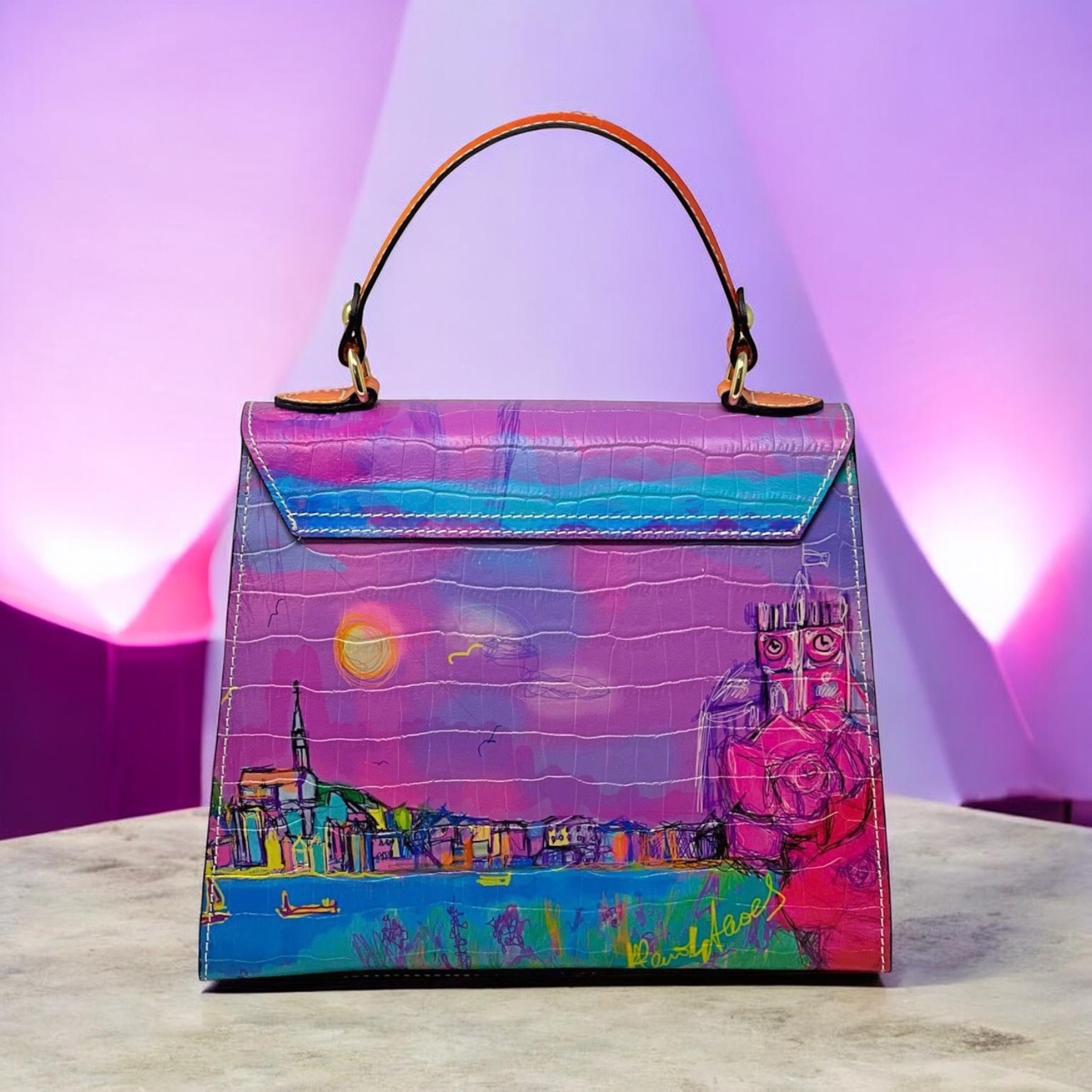 Print handle + purple-fuchsia print reversable strap
